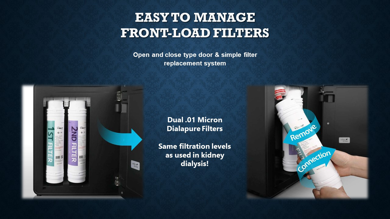 - životnost filtrů je 3 600 nebo 7 200 litrů při použití naší předfiltrace (specifikace filtrace: ultrafiltrační membrána s EM keramikou, aktivní uhlí, hloubka filtrace 0,15µm , odfiltrování těžkých kovů, azbestu, bakterií, chlóru, zbytku pesticidů, drog a nežádoucích pachů a příchutí)