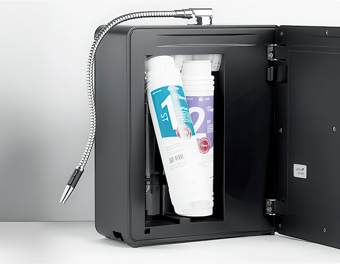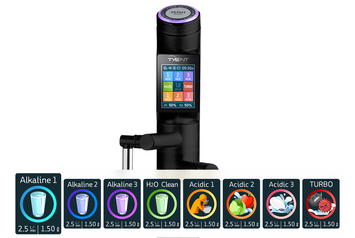 Ionizátor vody UCE Black Limited Edition, který se bez problémů zabuduje do vaší kuchyně, je dokonalý podpultový ionizátor vody. Díky širokému rozsahu pH 1,7–12,5 poskytuje alkalickou vodu bohatou na vodík k pití a vaření a také silnou kyselou vodu pro přirozené čištění. Elegantní matně černá baterie s dotykovou obrazovkou s výraznými barvami dodává designu eleganci a moderní vzhled, zatímco dvojité filtry Dialipure™ o velikosti 0,01 mikronu odstraňují více než 200 kontaminantů, aby byla každá sklenice čistá a osvěžující.