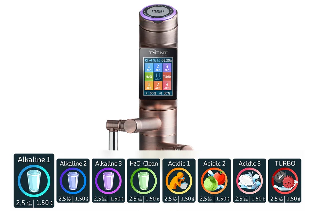 Ionizátor vody UCE Black Limited Edition, který se bez problémů zabuduje do vaší kuchyně, je dokonalý podpultový ionizátor vody. Díky širokému rozsahu pH 1,7–12,5 poskytuje alkalickou vodu bohatou na vodík k pití a vaření a také silnou kyselou vodu pro přirozené čištění. Elegantní matně černá baterie s dotykovou obrazovkou s výraznými barvami dodává designu eleganci a moderní vzhled, zatímco dvojité filtry Dialipure™ o velikosti 0,01 mikronu odstraňují více než 200 kontaminantů, aby byla každá sklenice čistá a osvěžující.